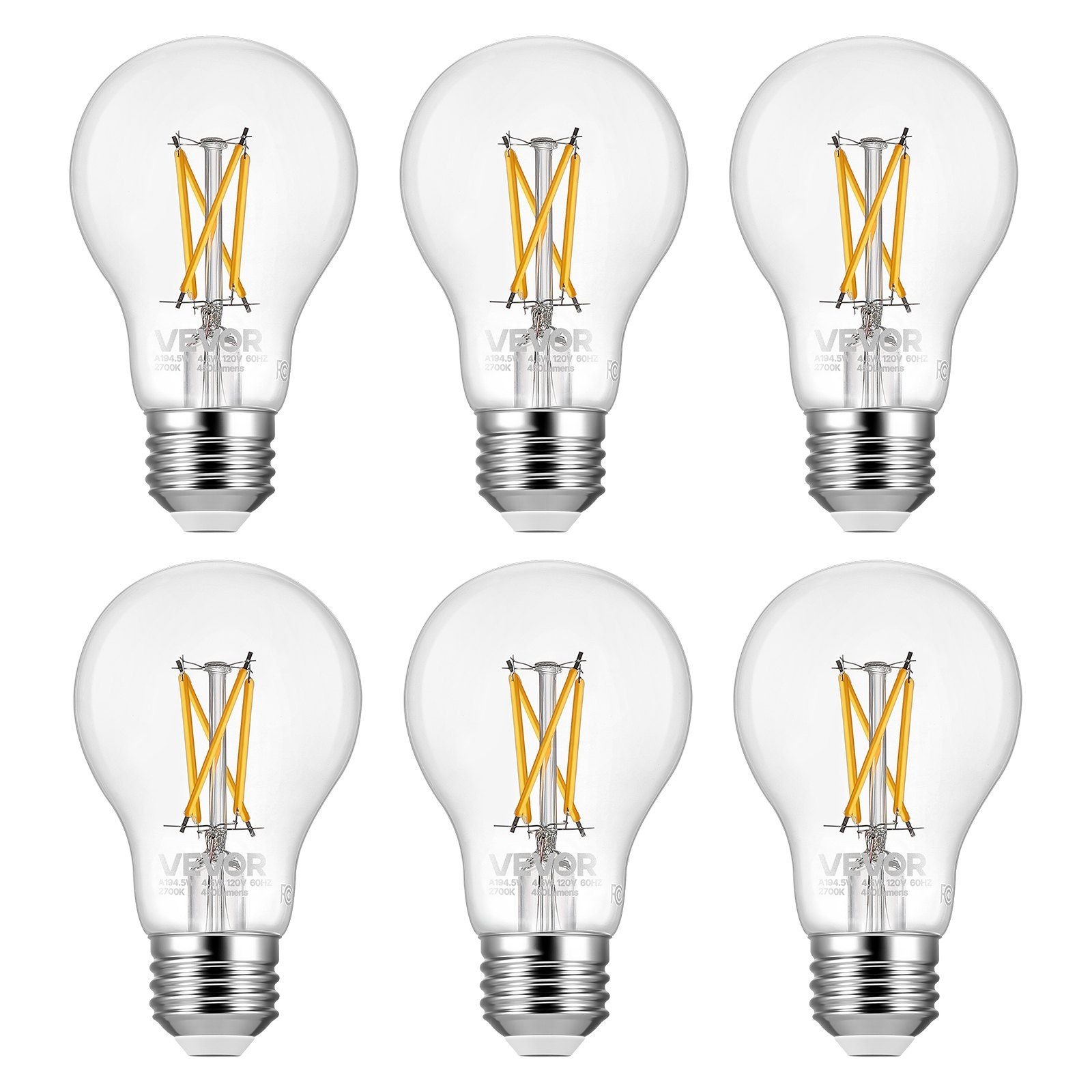 1.Warm Light Vintage Bulb: This set of 6 bulbs features a 2700K soft yellow light and a vintage Edison-style design. The high Color Rendering Index enhances colors, effortlessly creating a warm and cozy home atmosphere. It's the ideal choice for upgrading your home lighting